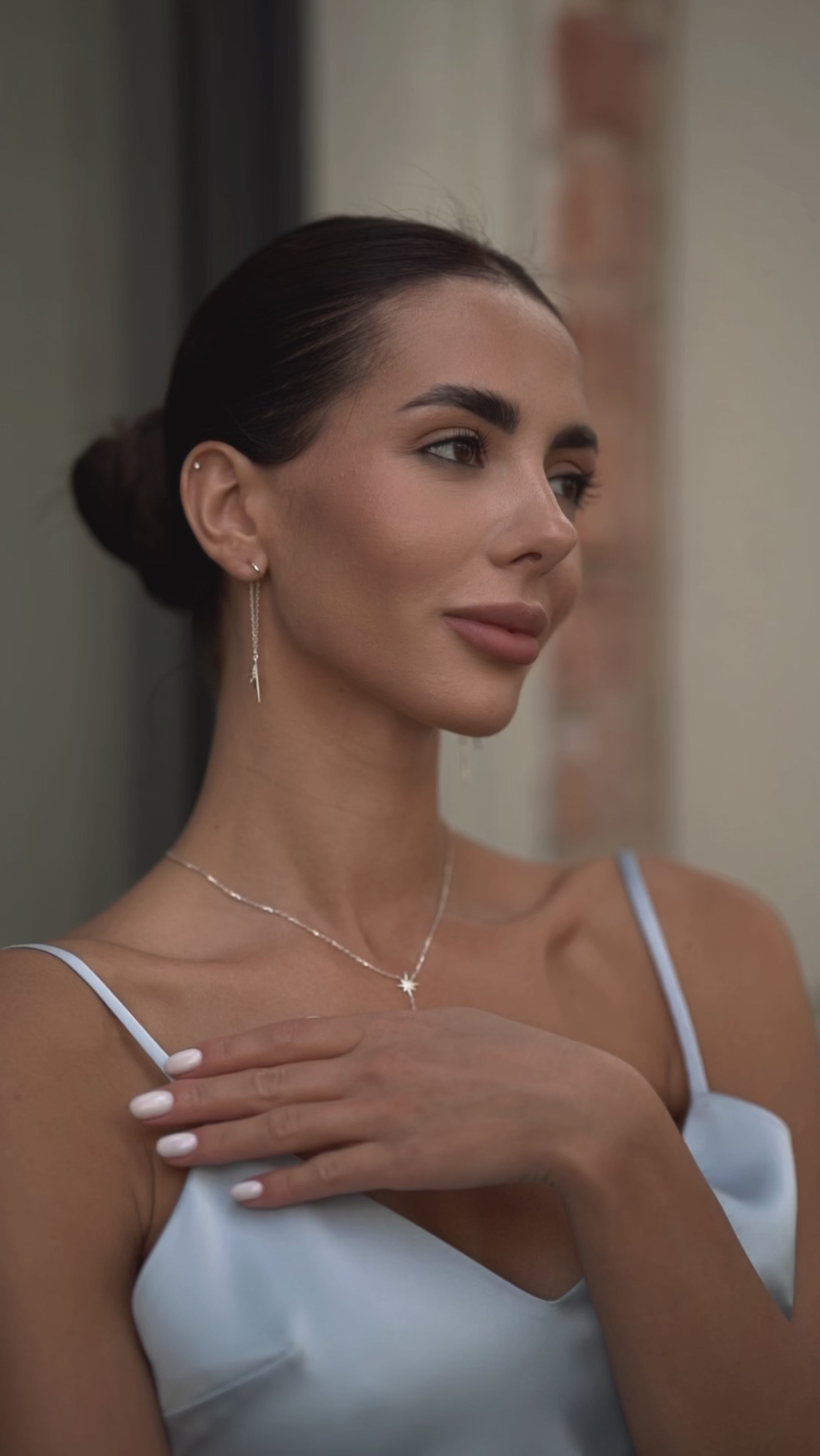 Витягнута форма кольє нагадує шлях світла — від однієї зірки до іншої. Зірки з муассанітами тримають фокус сяйва , а ланцюжок лягає плавно, підкреслюючи лінію шиї.